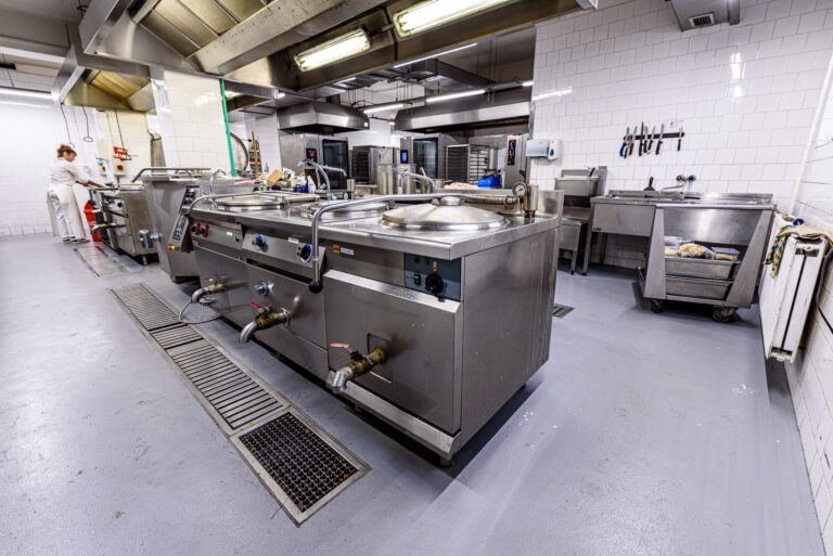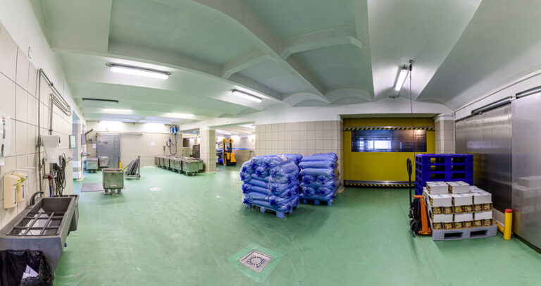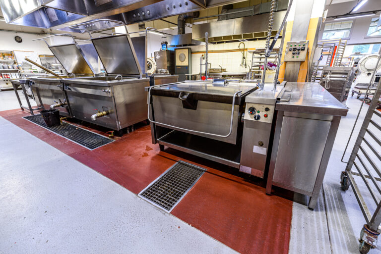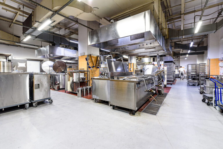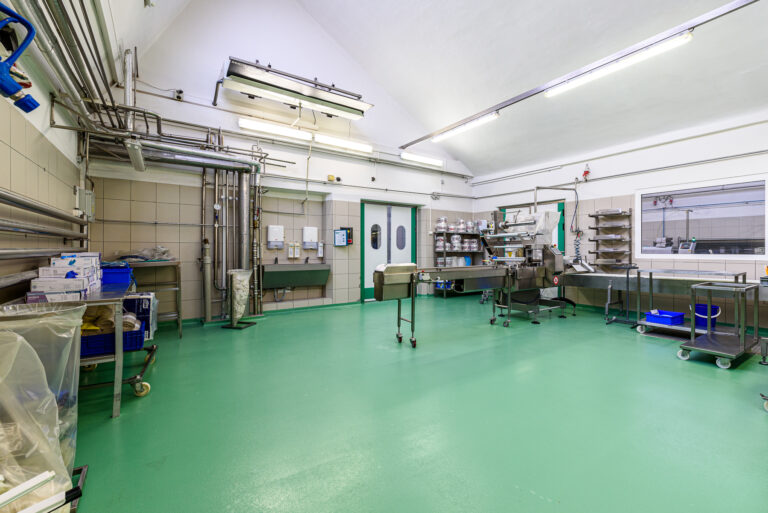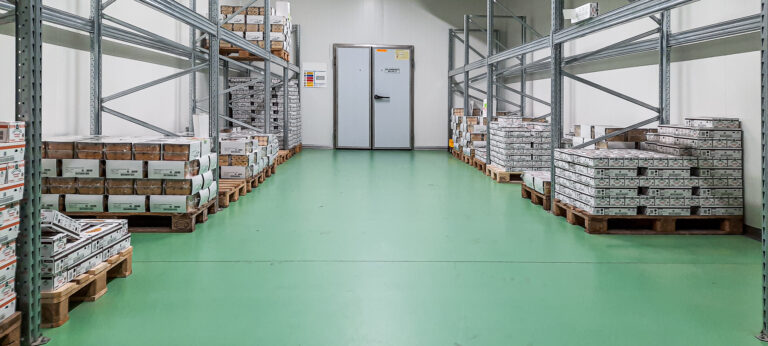 Čtyřkomponentní, strojně hlazená, polyuretanbetonová podlaha z uretan-urea pojiva, pigmentů a křemičitých plniv specifických frakcí s přehledem odolává běžným podmínkám potravinářských provozů.