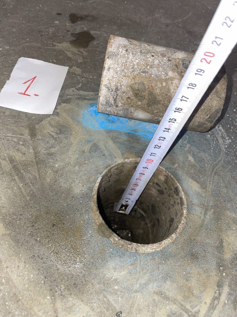 Zákazník sa na nás obrátil s konkrétnou požiadavkou na injektážnu opravu „pumpujúcich“ betónových dosiek. Vykonali sme sondy, aby sme overili skladbu podlahy a zistili, či je medzi vrstvami prítomný podkladový alebo konštrukčný betón. Na základe toho sme